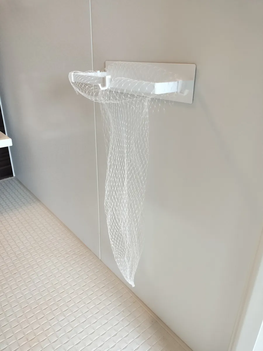 ちなみに一時的ですがお風呂場で横向きに壁に貼り、ネットをかけて子供のお風呂場おもちゃを入れ込むのにも使ってました!🐤