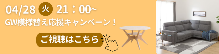 4月28日(火)21:00~:ニトリLIVE「GW模様替え応援キャンペーン✨期間限定価格のお得な商品大集合!ソファやデスク、カーテン、ラグが登場」