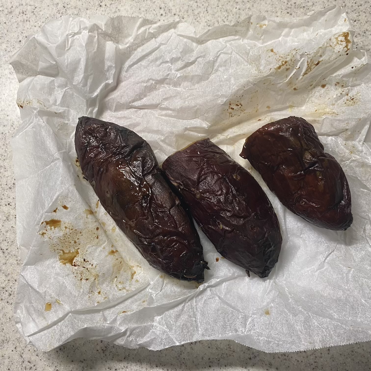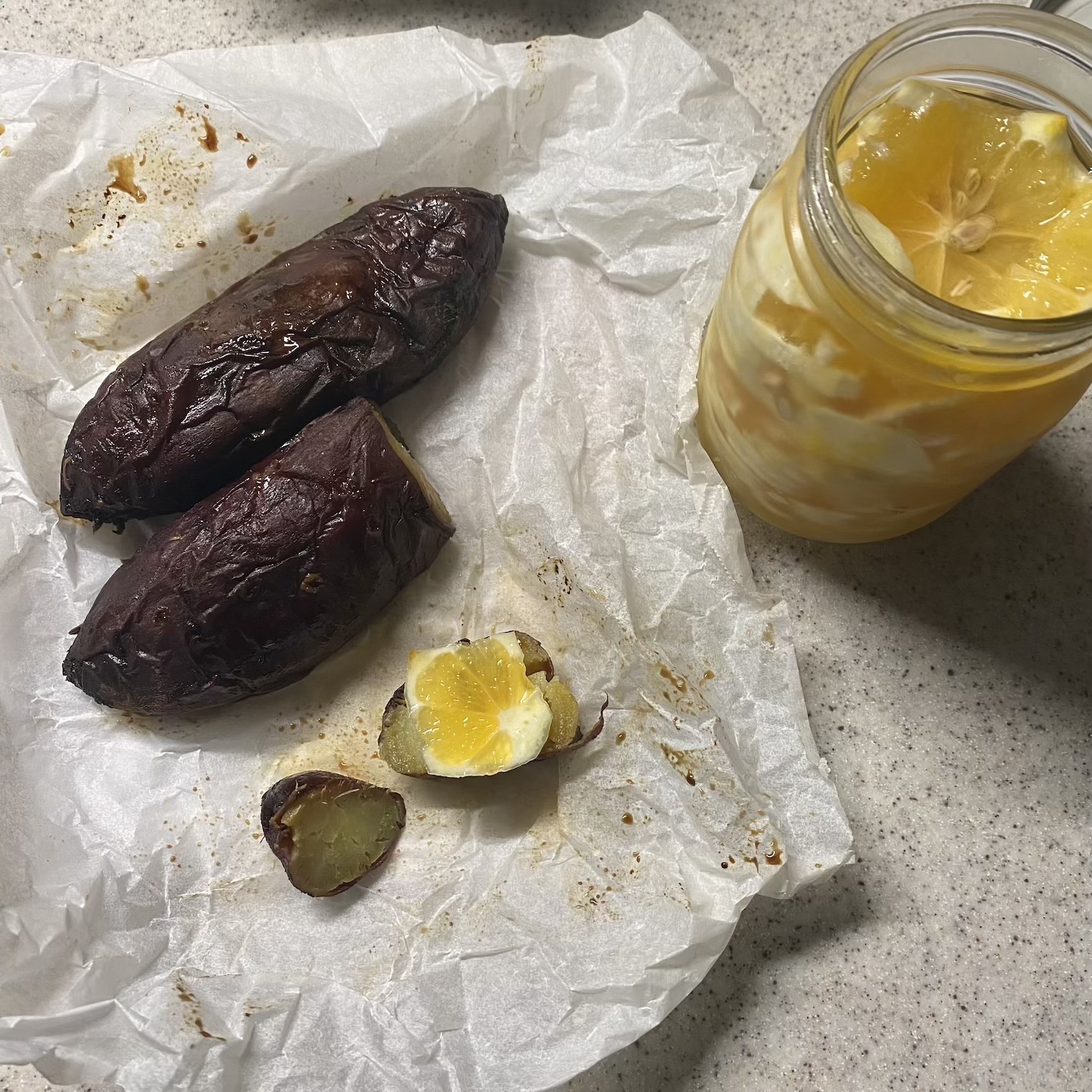 できたやきいもを切ってまた焼いて干し芋風になりました。甘さが濃厚になり、めちゃくちゃおいしい。これはもうお菓子🍠