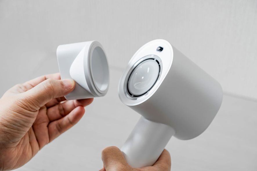 「ナノうるおいミスト美髪ドライヤー」は、ノズルが短く、重心バランスに優れたT字型デザイン。コンパクトな形状で取り回しがしやすいサイズです。カラーはホワイトとダークグレーの2色。実物を見てみると、マットな質感がどんなインテリアにも馴染み、シンプルでスタイリッシュな印象を受けます。
