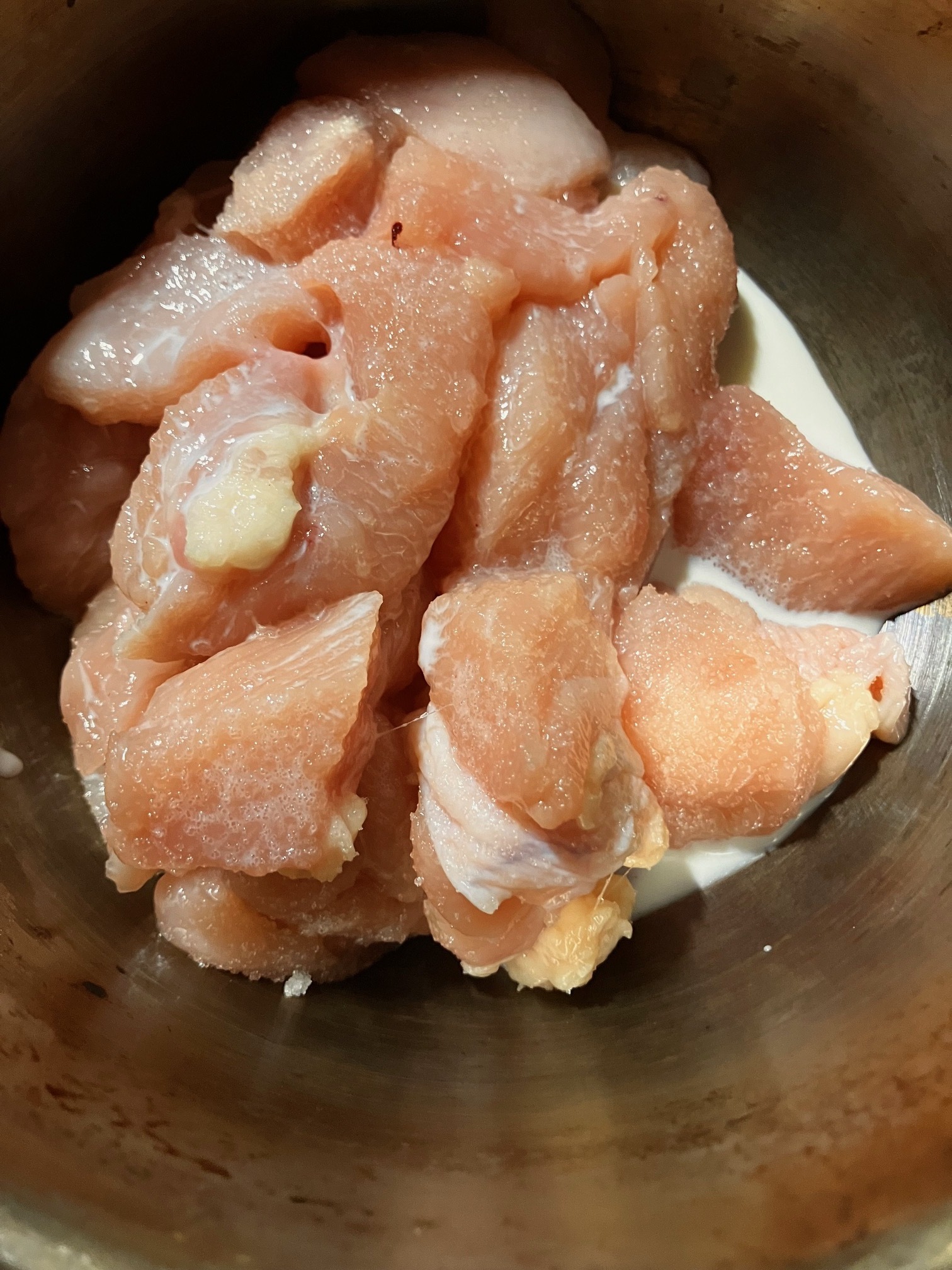 ②年季の入ったボールに お肉 塩(適当) 生姜(適当) 牛乳(適当)をいれ