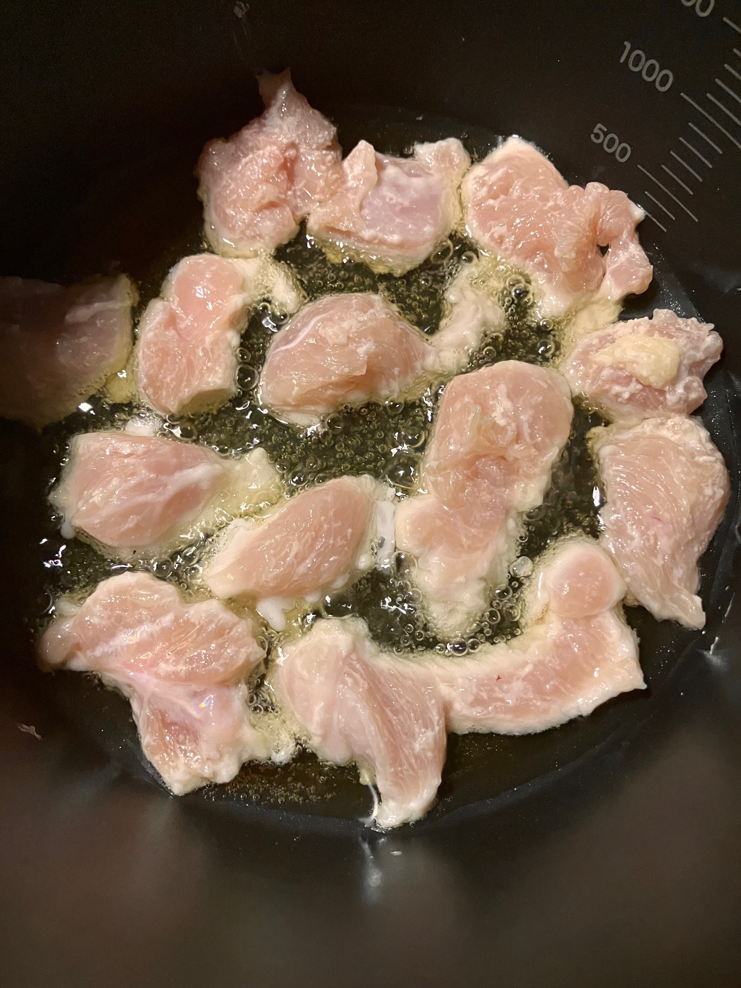③マルチ調理ポットに油を入れ 電源を入れる→少量で揚げ焼きしていく