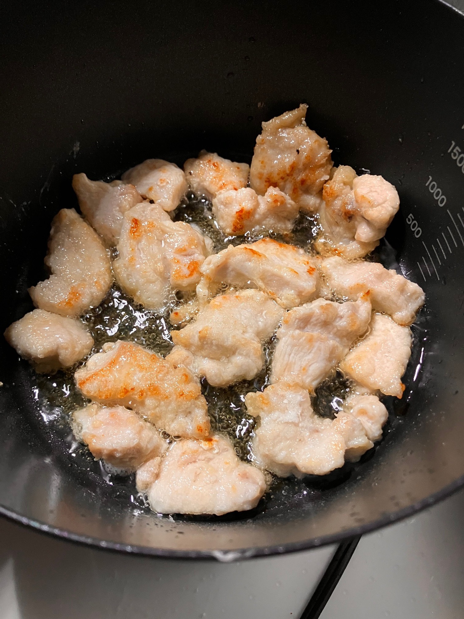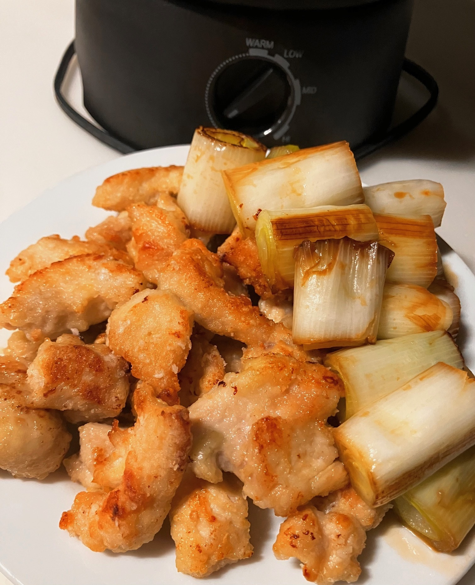揚げ焼き🐔して、ネギに脂と鶏肉の旨みを吸わせて完璧じゃないですか👏