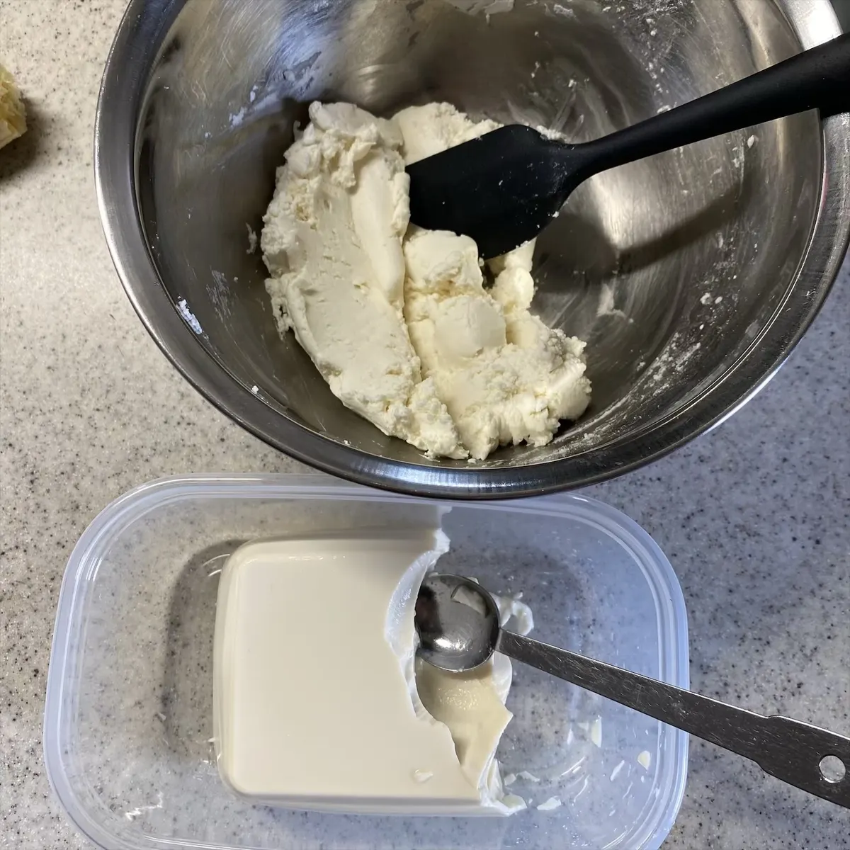 1️⃣白玉粉に絹ごし豆腐を1:0.9~1.1くらい混ぜる。白玉粉によって違うので豆腐少なめでスタートするとよい。