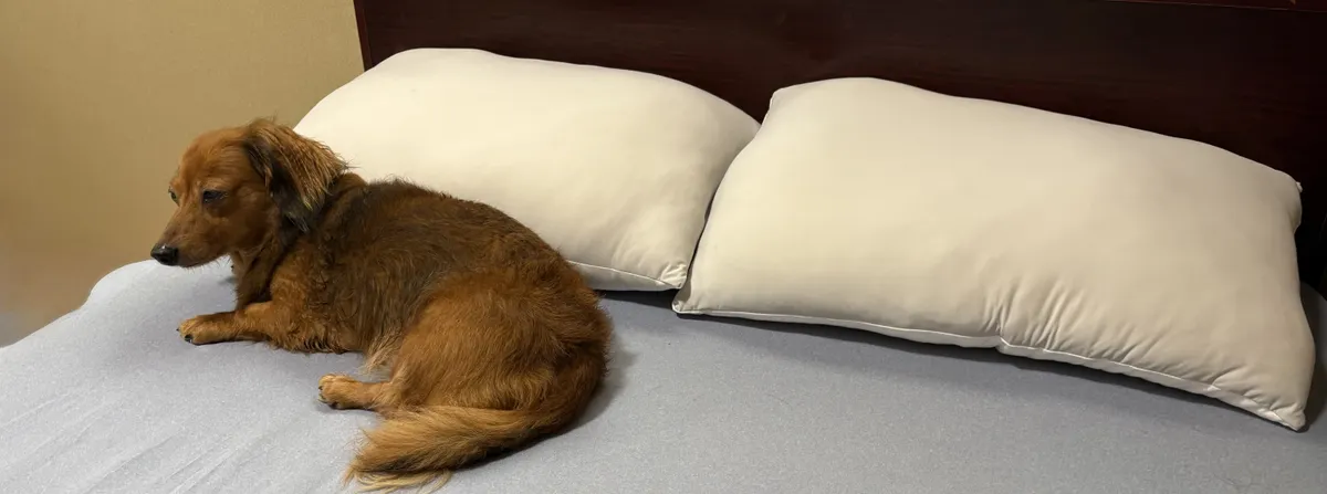 目覚めたら、ワンコが枕の上に寝てまーす( ˶˙ᵕ˙˶ )☀️オハヨ!