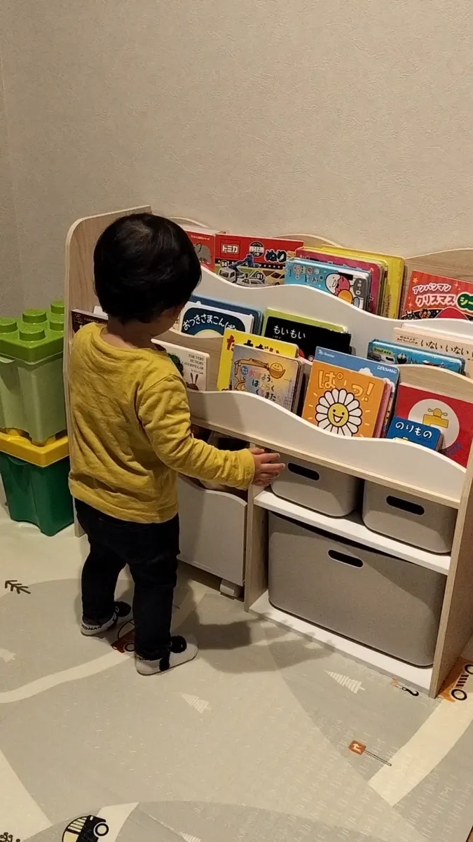 絵本がたくさん入るし、何より早速自分で出し入れし始めた姿を見て「片付けできるようになったのか…」と母は感動してました😂❤️