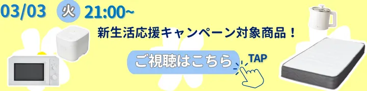 3月3日(火)21:00~:ニトリLIVE「新生活応援キャンペーン対象🌸炊飯器や電子レンジなどの家電セットや掃除機、ベッドが登場!」