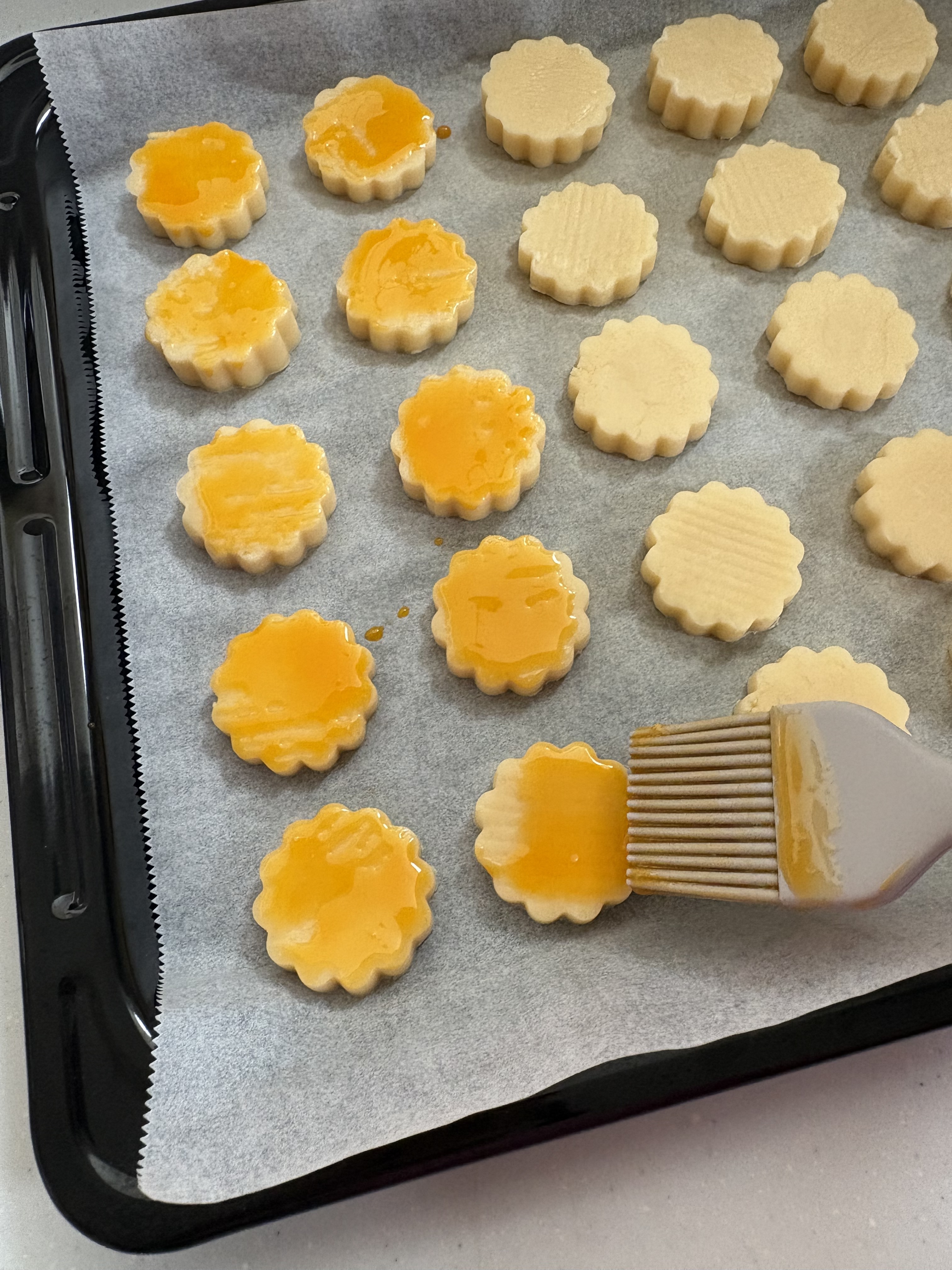 型抜きして生地にしっかりと卵黄を塗ります(溢れるくらい)