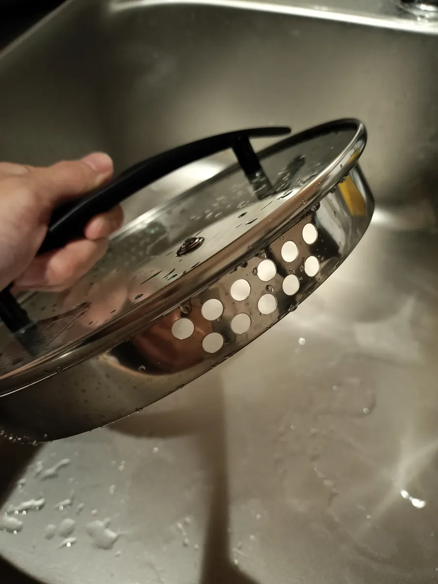 目盛りあるのでいつもは適当ですがきちんと測った塩配分できました〜👏🧂😂そして蓋に湯切り口大&小があるのでザルなしで済みます👍️