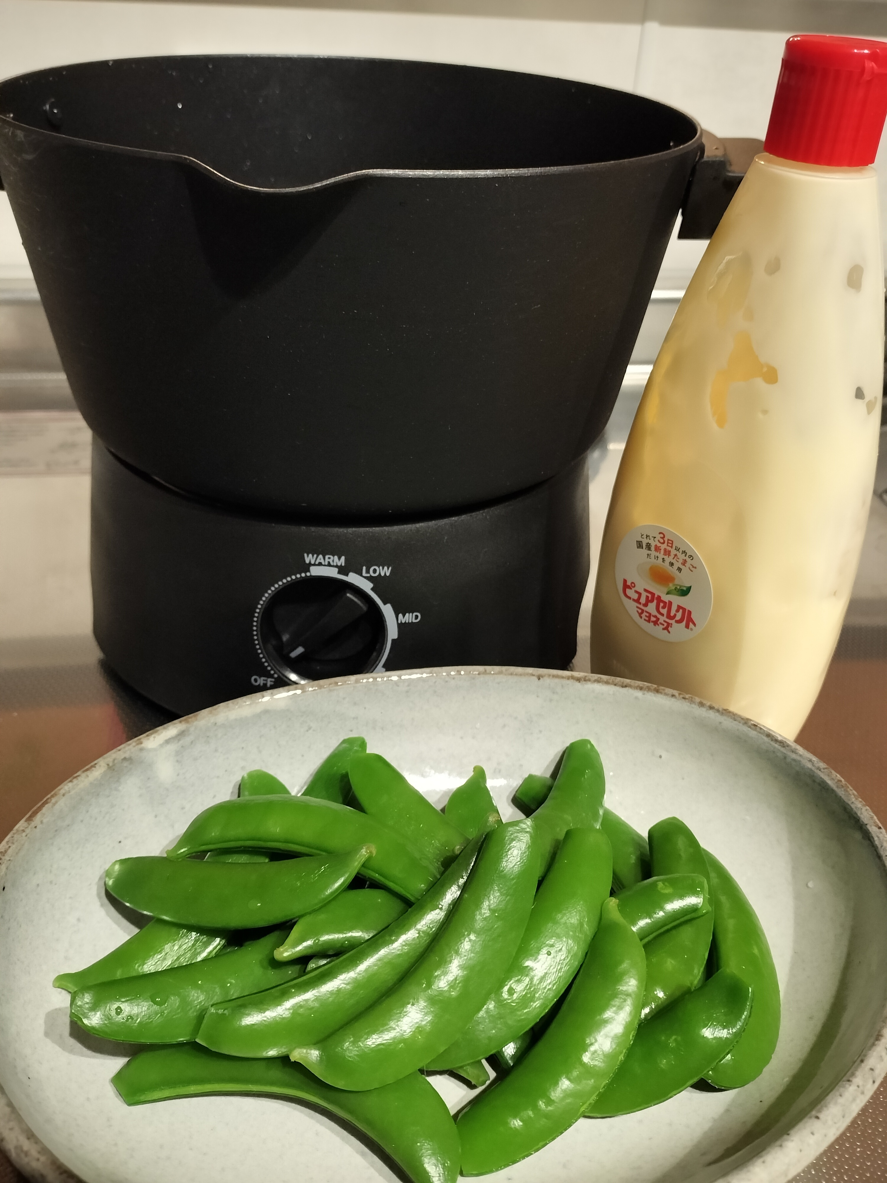 旬のスナップエンドウ!マヨつけてシャキポリ美味しくて好きです😋
