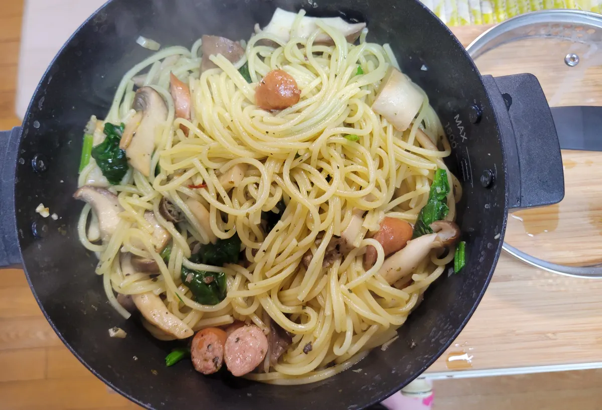 1台10役マルチ調理ポットでペペロンチーノ風パスタを作ってみました⸒⸒⸜( ˶'ᵕ'˶)⸝✨️