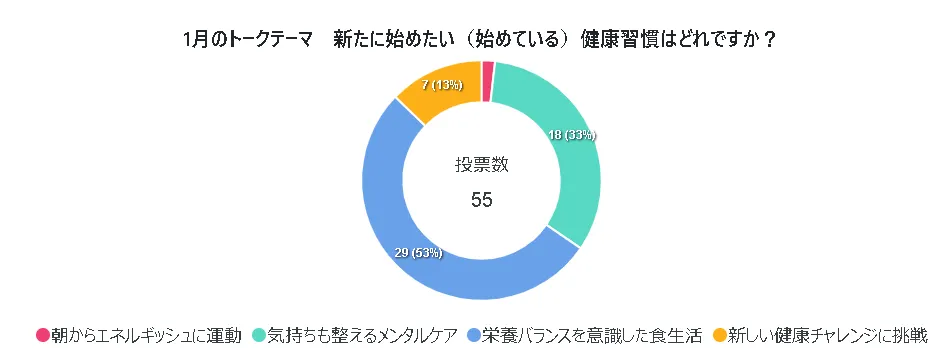 1月のトークテーマは「新たに始めたい(始めている)健康習慣はどれですか?」でした。