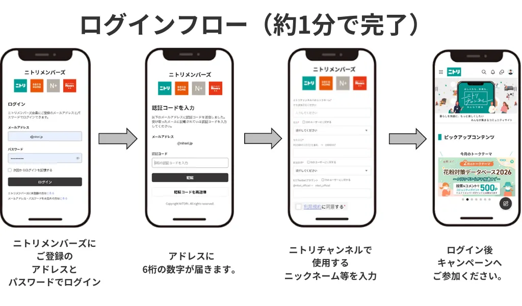 ①ニトリチャンネルにログイン