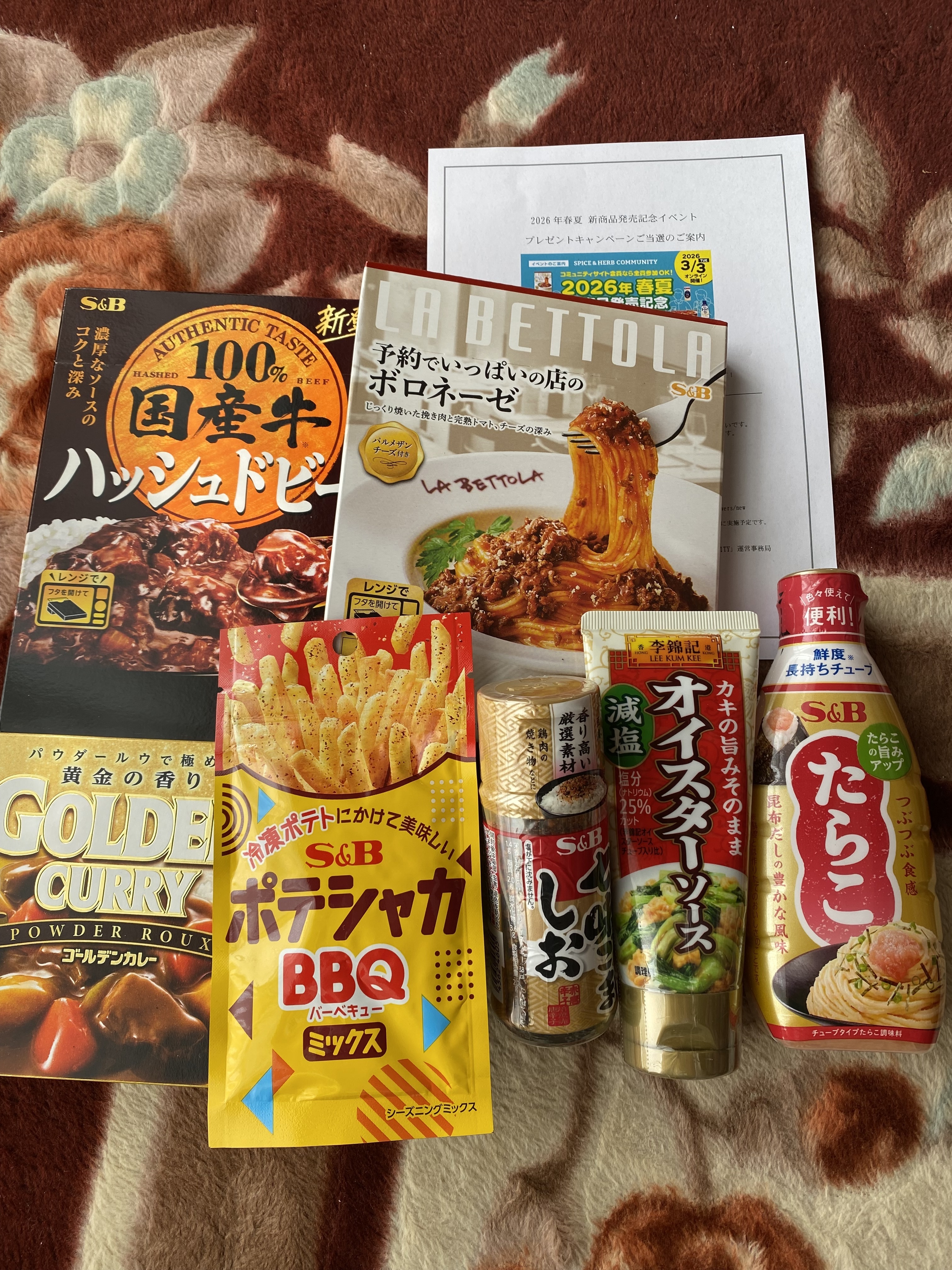 エスビーさんのコミュニティLIVEに参加して応募してたら📦届いてびっくりニヤニヤ😁