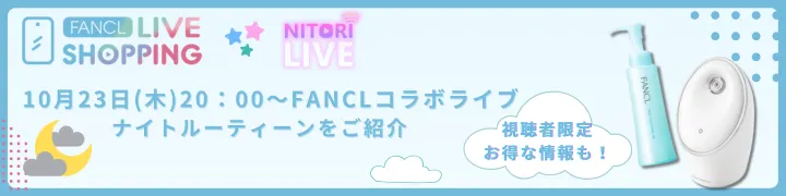 10月23日(木)20:00~:ニトリLIVE「FANCL LIVE SHOPPINGコラボ✨ナイトルーティーンをご紹介」