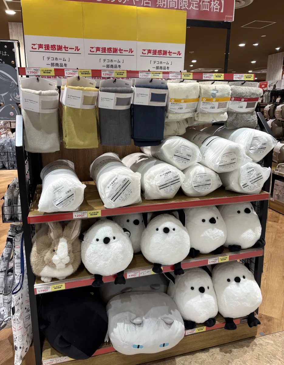 ちなみに主人が行って、お写真を撮ってきてくれたのですが、ちょうど某球団の応援感謝セール中でして、「長座布団」カバーと「ロングフロアクッション」カバー等の店舗限定セールがやってました🙌