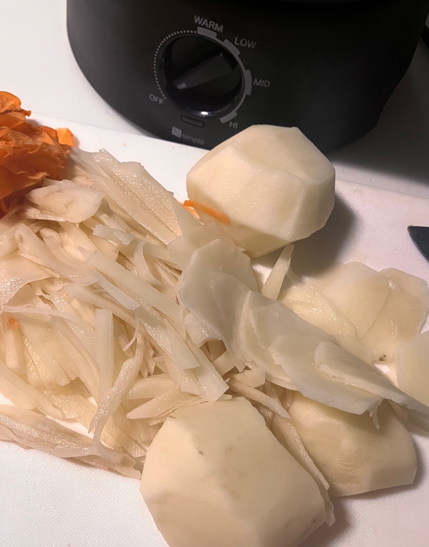 ①🥔をスライスしたのち千切りにする