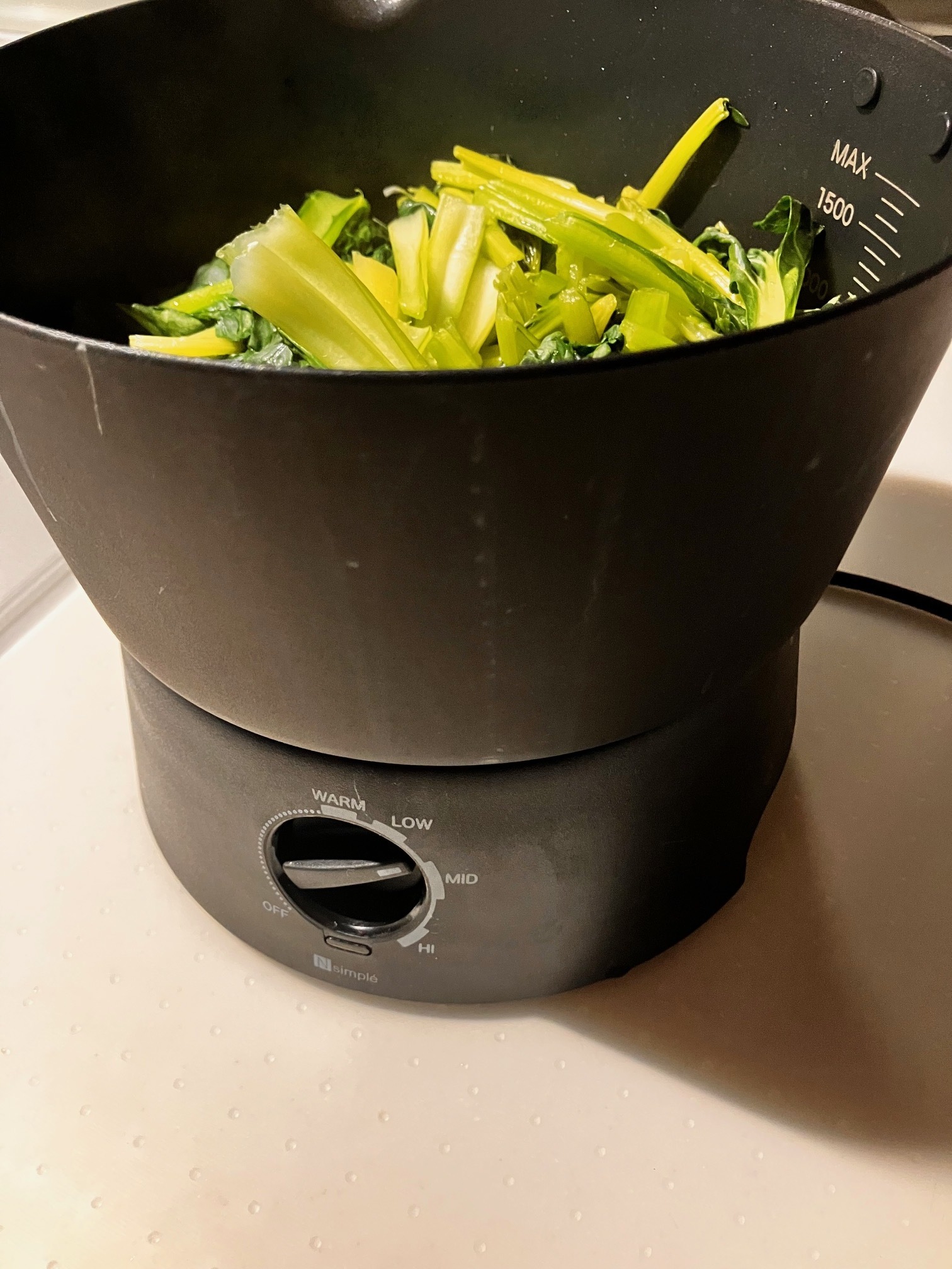 マルチ調理ポットで炒めていく