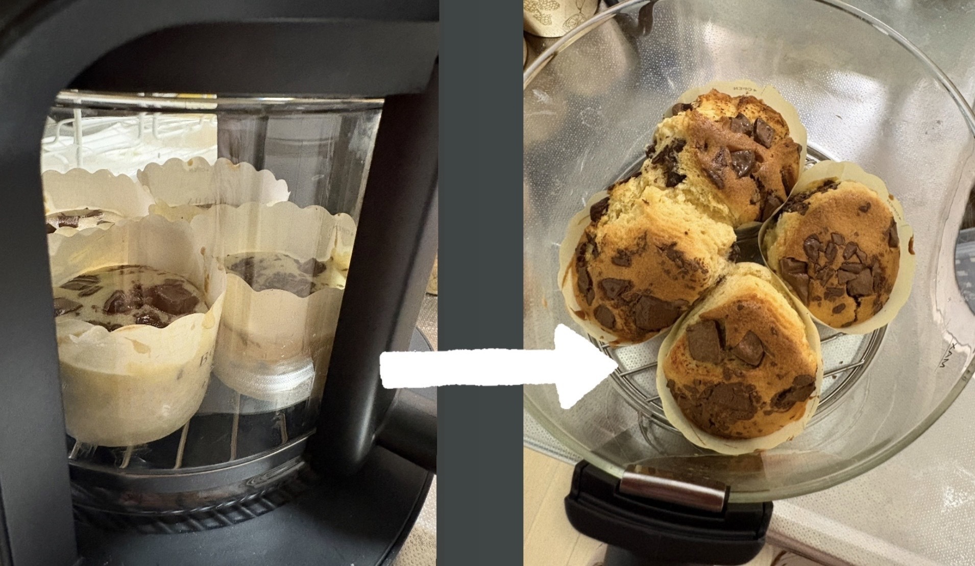 ノンオイルフライヤー(https://www.nitori-net.jp/ec/product/2113400056121s/)を使ってようやく作りたかったチョコレートマフィンを作ってみました😋