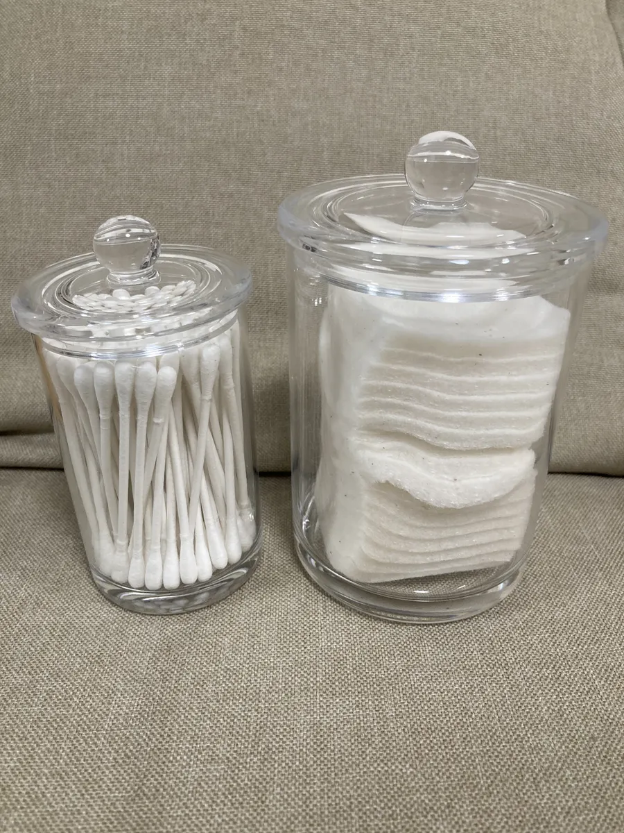 私もコットンも綿棒も買った時のダサダサ入れ物のまんまだわ🫣