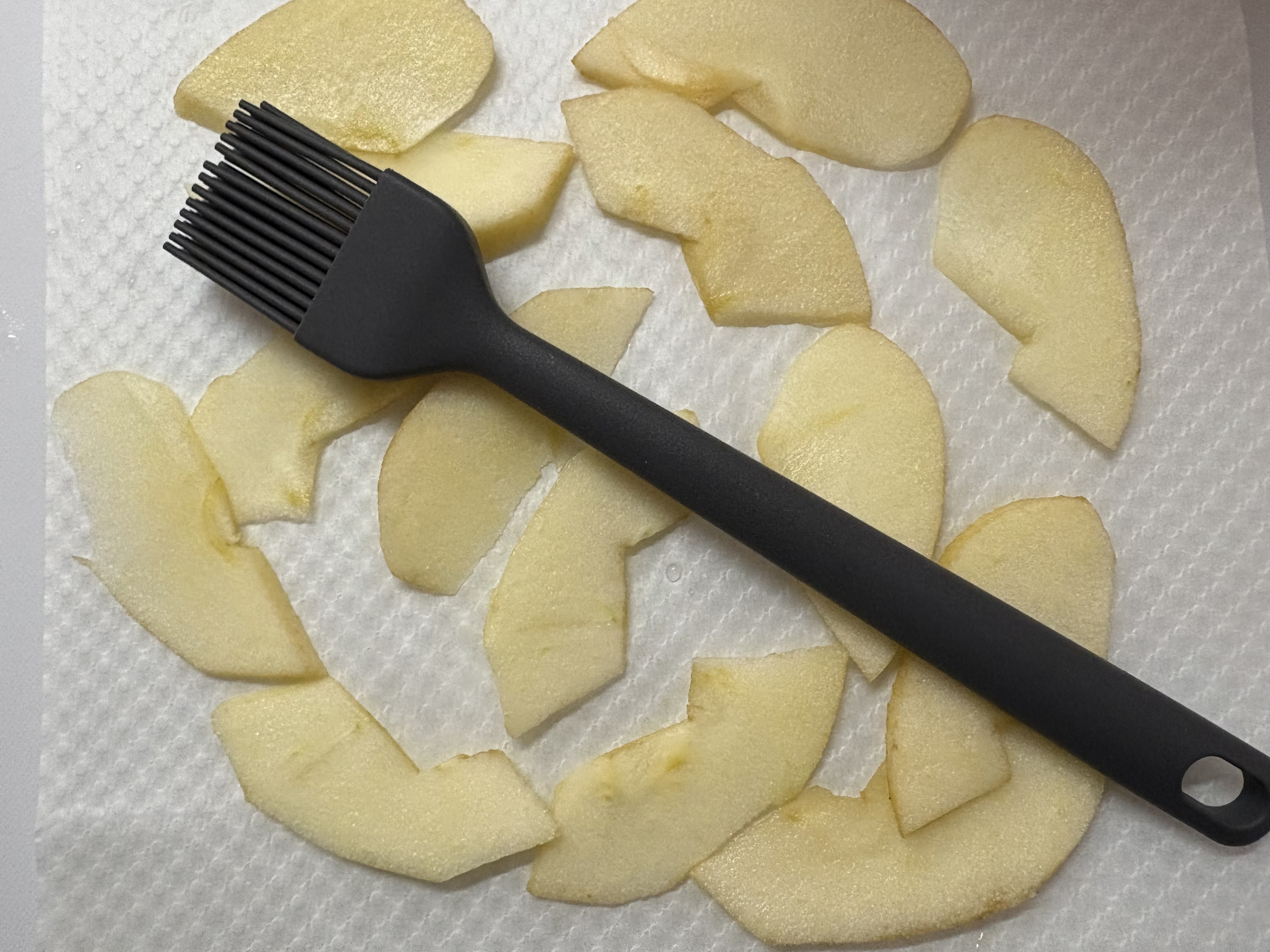 2.りんごにシリコンハケhttps://www.nitori-net.jp/ec/product/2111200002621s/で、油をうっすら塗ります