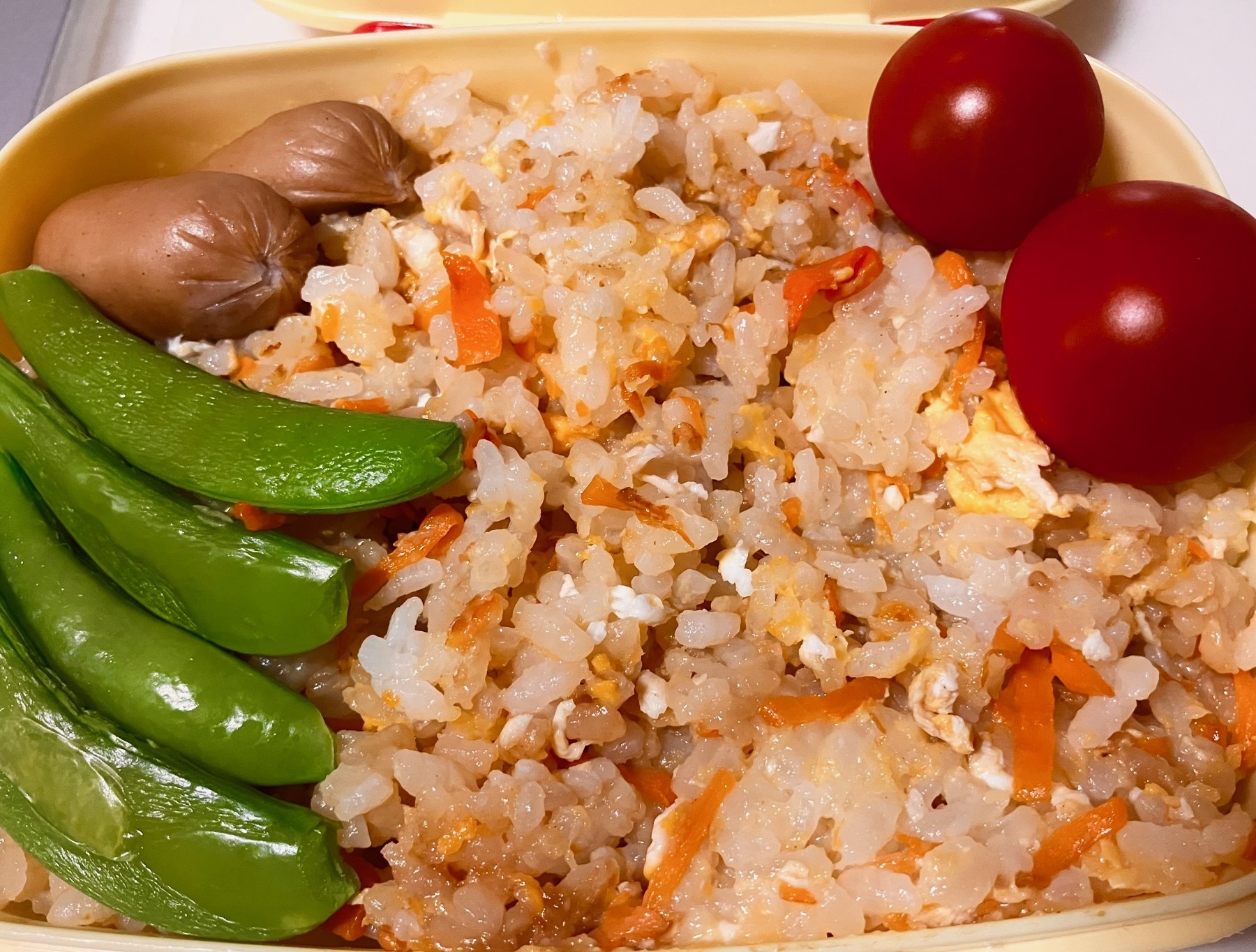 ご飯 🥕 🥚 スナックエンドウ ミニトマト ウィンナー