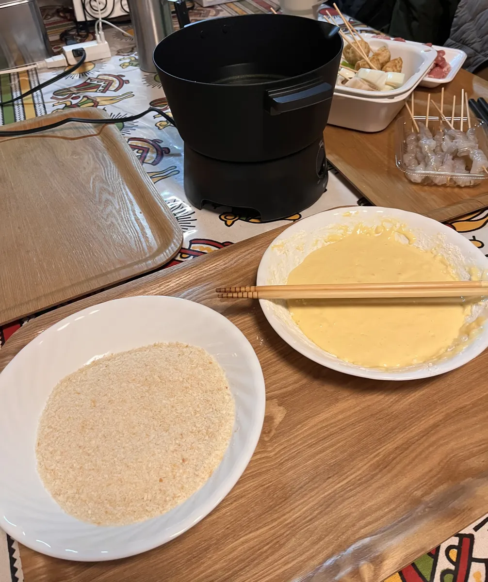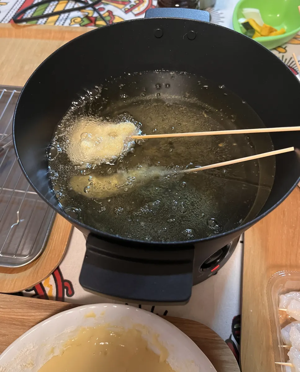 マルチ調理ポットで今日は、串カツに挑戦です。串カツと言っても野菜中心です。