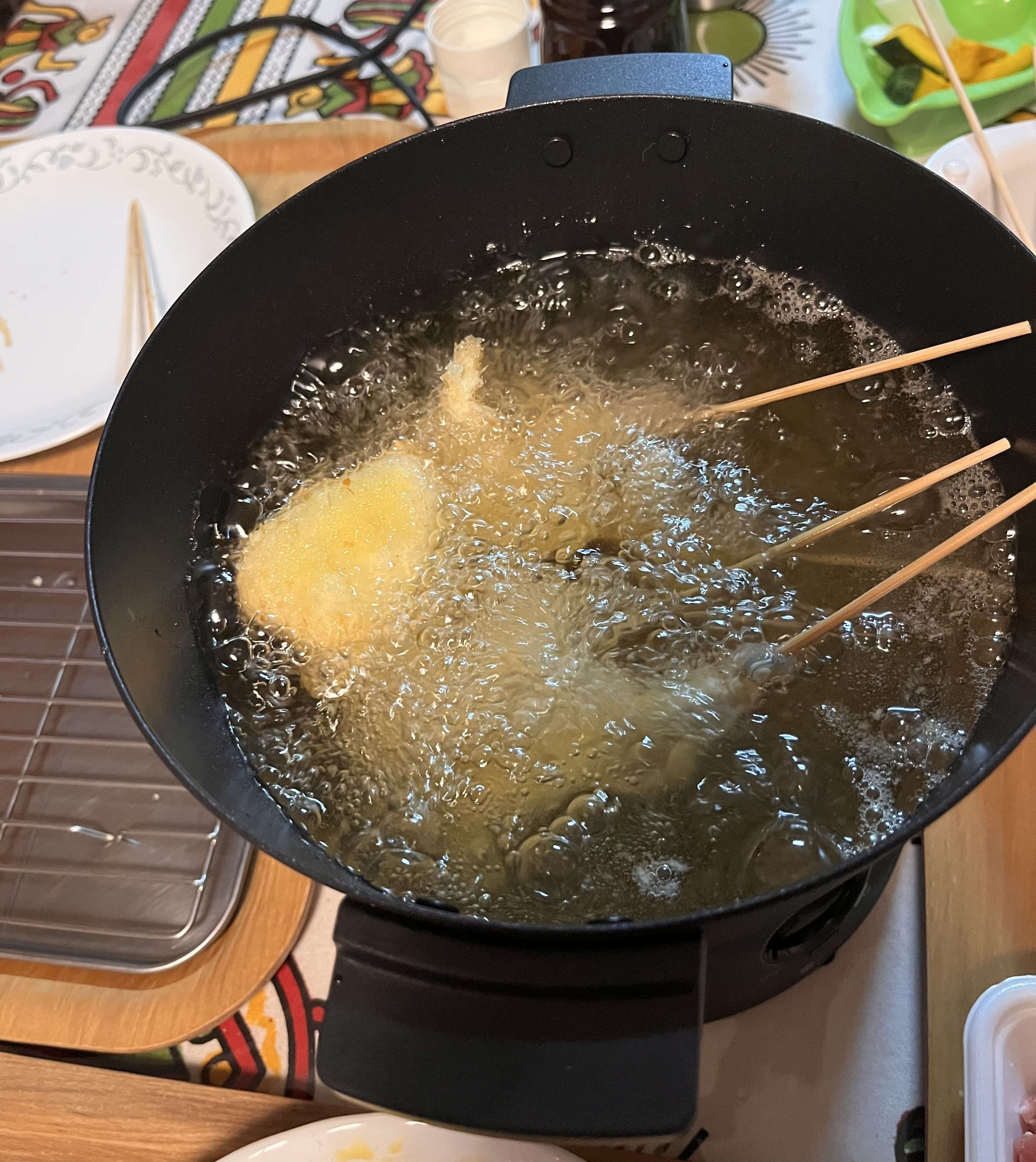 食卓であげてすぐ食べられますね!揚げたてはさぞ美味しかったでしょうね❤️