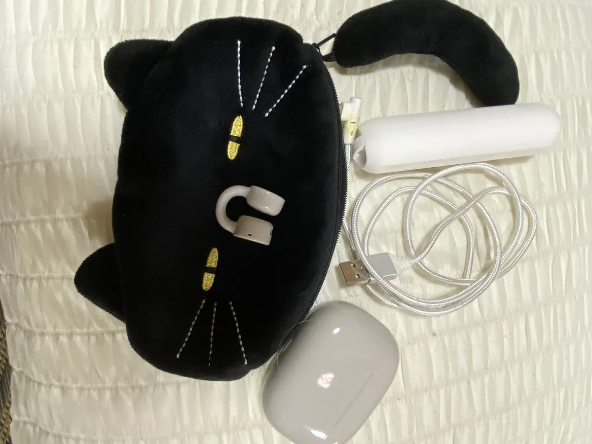 ニトリのイヤホン、ケーブル、モバイルバッテリーをデコネコちゃん🐈‍⬛常備です。