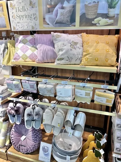 クッションカバーもデコの可愛さが伝わってくるわ。ラメあるのは気づいてなかった。やっぱり店舗は良いなぁ
