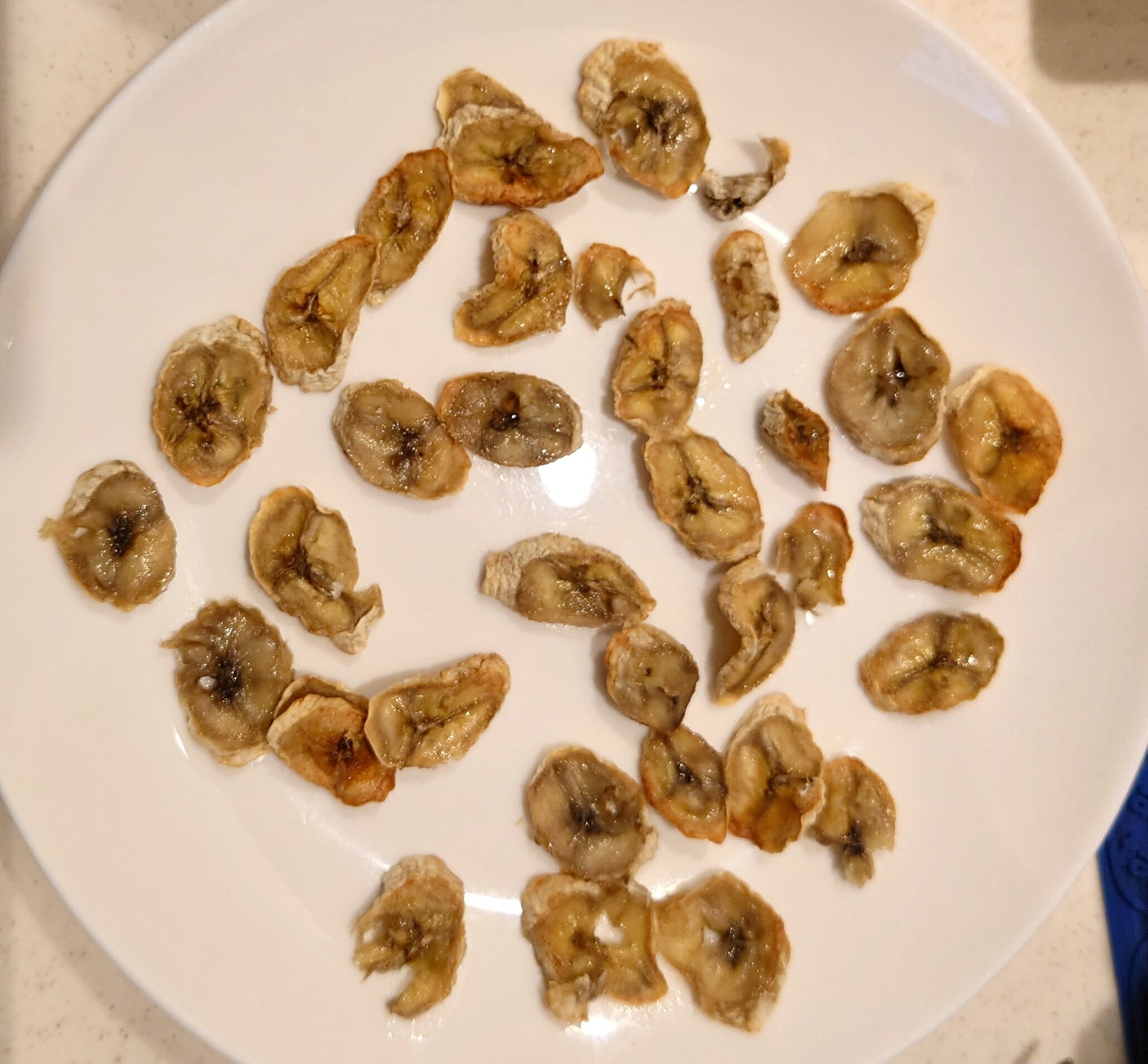 まだ乾燥しきってなかったのですが、待ちきれずこの状態で食べました。濃いバナナという感じでバナナチップスというにはほど遠い食べ物でした。