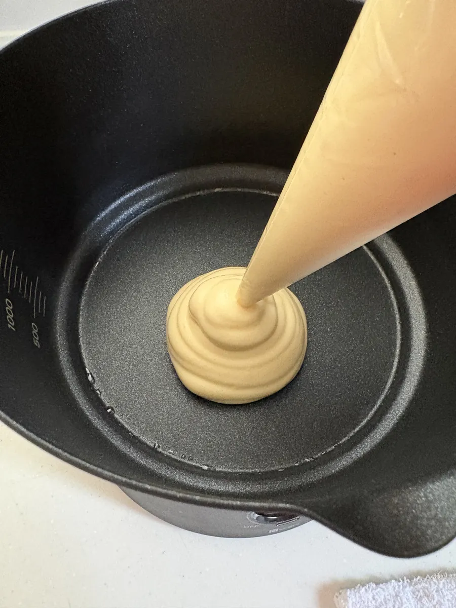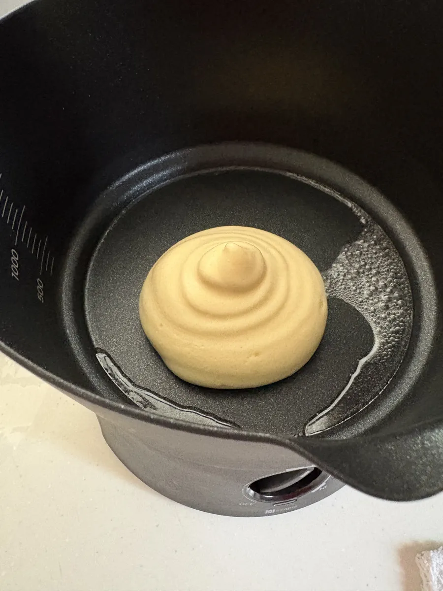マルチ調理ポットに油を入れ、全体が温まったら生地を流し込みLAWで8~10分ほど焼きます。小さじ1程度の水を入れて蒸し焼きにしてください🚰焼き色を確認したらひっくり返します!同じく10分程度焼いたら完成!!