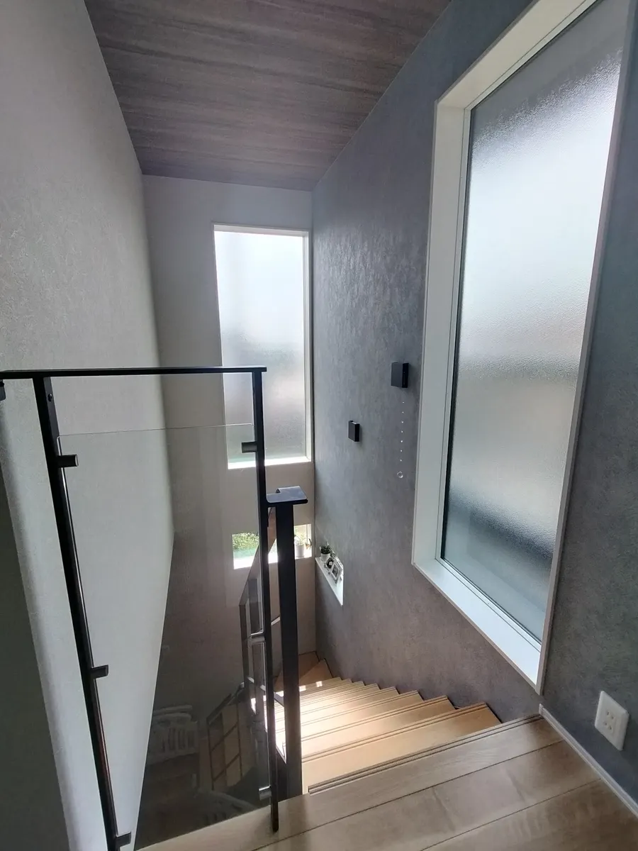 うちの子供たちのお家もリビング階段ですが、よくあるフツーの階段とフツーの窓🤣