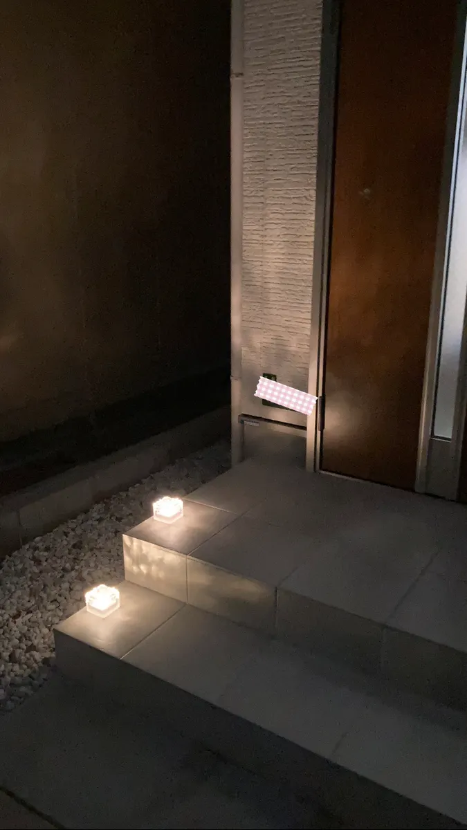 玄関ポーチの電気も消してライトの雰囲気がどんな感じか試してみました✨✨
