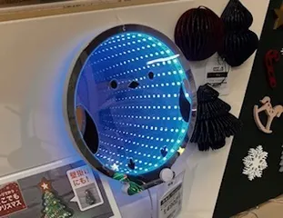 クリスマスの小物たち お店の奥の棚に、クリスマスの小物たちが飾られていました🎄 可愛いシマエナガに見えるライトが…とても気になりました✨☆✨ 立体的に見えるのに、シマエナガさんを触ってみると平面なんです。。なんで?!面白くて可愛い~♡