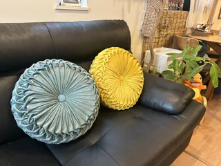 クッションお気に入り 色も形もお気に入り❗️ニトリクッションもう一色追加購入予定です😙