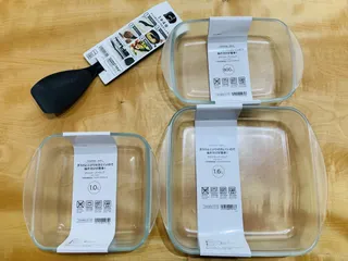 キッチンアイテム🍳 ありがたいことにキッチンセットのモニターをさせていただきました✨お試しさせていただいたのは4点!調べやすいように画像載せますね⇩ ガラス容器は◎オーブン◎電子レンジ◎食洗機重厚感があり、しっかりしています!蓋がないので、別売りでも作って欲しい🥹🙏 マルチシャモジ◎食洗