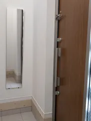 念願の割れないフィルムミラー🪞 ネット注文していたフィルムミラー25×120cmです🪞まずは下地センサーで下地探しをしこのフックを付けました👍️どこに付けるか悩みましたが、太陽光の入り具合を考えこちらに付けました🌞これで出掛ける前のチェックも👌