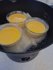 手作りプリン パパちゃんがいろいろSNSで見てたみたいで👀プリン作りたい〜🤭って今日は手作りプリンを🍮作ってくれました。🤍1台10役マルチ調理ポット🤍を使って作ってくれました😀材料〜たまご🥚3つ⸜❤︎⸝🥚3つのうち🥚1つだけ🥚を丸ごと全卵と…残りのたまご🥚🥚2つは卵黄と卵白に分けて卵黄だけの分と全卵のたまご🥚を