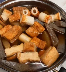 蒸しおでん🍢 大きな大きな大根を1本貰ったので おでん🍢にしましたマルチ調理ポットを用意して 蒸していく大根、蒸しあがり~😆別鍋に用意した 昆布とかつおだしに 大根を入れるこんにゃくとあつあげも 蒸す蒸せたら 別鍋に投入→炊いてゆく大根葉🍃も 蒸してゆく(茎がちょっと堅そうだったので)蒸し終わったら 蒸し器を取り
