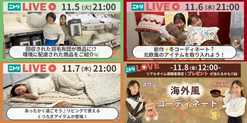 ニトリLIVE予告 クリスマスの配信ご視聴いただきましたか??🎄Rubyちゃんから裏側の写真が届きましたので、皆さんにお見せしちゃいます♪ クリスマスはいつになってもワクワクするイベントですよね~💓配信メンバーも、クリスマスアイテムに囲まれて、一足先にクリスマス気分に浸っておりました✨ 遊んでますか