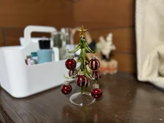 うわぁめちゃくちゃかわいい🌲✨ ガラス製?そんなに大きくない? テーブルにちょこんと置いても邪魔にならないし、むしろ花を添えてくれる💕 何回も何回も見てしまったわ👀✨ いいなぁいいなぁ私も飾りたいなぁ。 そして店舗に行ってクリスマス気分味わいたいなぁ🎄