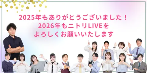 2026年は1月3日(土)から配信スタート!📣 皆さんMOI(こんにちは)🌞🎍✨ニトリLIVEチームのRubyです💎お正月休みということで、上の画像から2025年ラスト配信アーカイブをぜひチェック✨ 昨日の配信をもって2025年度は締めくくりとなったニトリLIVEですが、長い間ニトリLIVEをずっと見てくださっている皆さま、今年ニトリL