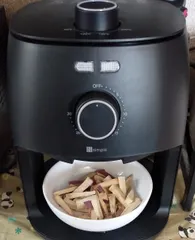 初のノンオイルフライヤー、結構難しかったです。レシピについていた10品はもう少し慣れたらと思い、パッケージにのっているポテトフライをサツマイモで作ってみようと思ったら、レシピなく。冷凍のポテトフライは時間と温度だけ説明書にあるが、網とかの付属品使うのか?分量は?全くわからず。とりあえずパッケージみる
