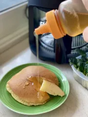 (17)米粉パンケーキ(ノンちゃん9)ホットケーキ的なものもできるのかな❓とやってみました。無事できた。素直に小麦粉の方がおいしいよな…と思いつつ。小麦粉でもやってみようかな🥞ノンちゃんのサイズのクックパーをグシャグシャに丸めてから皿に乗せてなんとなく形を作る。生地は全部ボウルに合わせて混ぜる。さっ