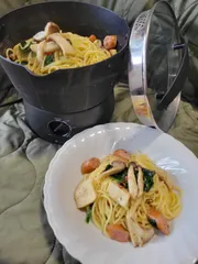 1台10役マルチ調理ポットでペペロンチーノ風パスタを作りました☆。.:*・゜ 1台10役マルチ調理ポットでペペロンチーノ風パスタを作ってみました⸒⸒⸜( ˶'ᵕ'˶)⸝✨️ ~調理器具~・1台10役マルチ調理ポット・フライパン(具材を炒める) ~材料~・水 ・パスタ・具材(ソーセージ、エリンギ、しめじ、ほうれん草、玉ねぎ…etcお好みで)&nbs