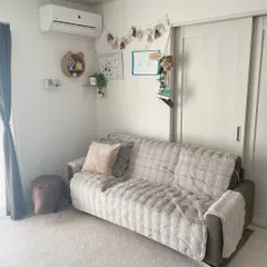 ソファパッド新しくしました🛋️☆ ネットでみて店頭で触り心地や色を見て気に入ったのでお迎えしました!!!(人気アイテムなのかな...?最寄りは在庫無しで隣町まで行きラスト1をGET🚗) ホワイトも迷いましたがニトリで買ったソファがブラウンなのでソファパッド
