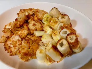 マルチ調理ポットDE揚げ物 今回は 揚げ物に挑戦~\(≧▽≦)/~材料ちくわ…3本(半分にカット)白ネギ…9個分(切り込みを入れ竹輪と同じ長さに)鶏むね肉…そぎ切り 作り方アイラップに ちくわと白ネギとマヨネーズをいれ 混ぜる混ざったら パン粉を投入し 口の部分をねじって振る鶏肉に塩こうじをつけて しばし置く粉チー