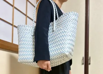 大容量でオシャレなPP模様網みバッグ🧳 ライブ配信を見て欲しくなりました。とっても可愛いPP模様で軽くて持ちやすいです!