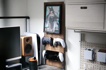「余り物には福がある」 先日ニトリのNポルダパンチング収納を使ったのですが、デスク背面で使っている都合上1枚有孔ボードが余ってしまいました。ということで、有効活用しようとゲームのコントローラー収納にしてみたのでレポートします!用意したのはニトリのパンチング用クランプ折りたたみデスクと併用す